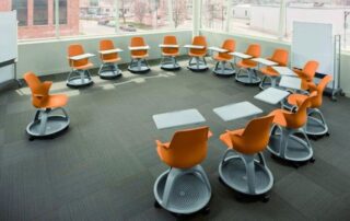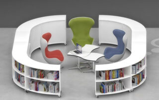 Vestiaires, panneaux de délimitation d’espaces, jardinières, plantes sans entretien, signalétique, tables hautes ou basses, containers de tri, tableaux magnétiques etc…