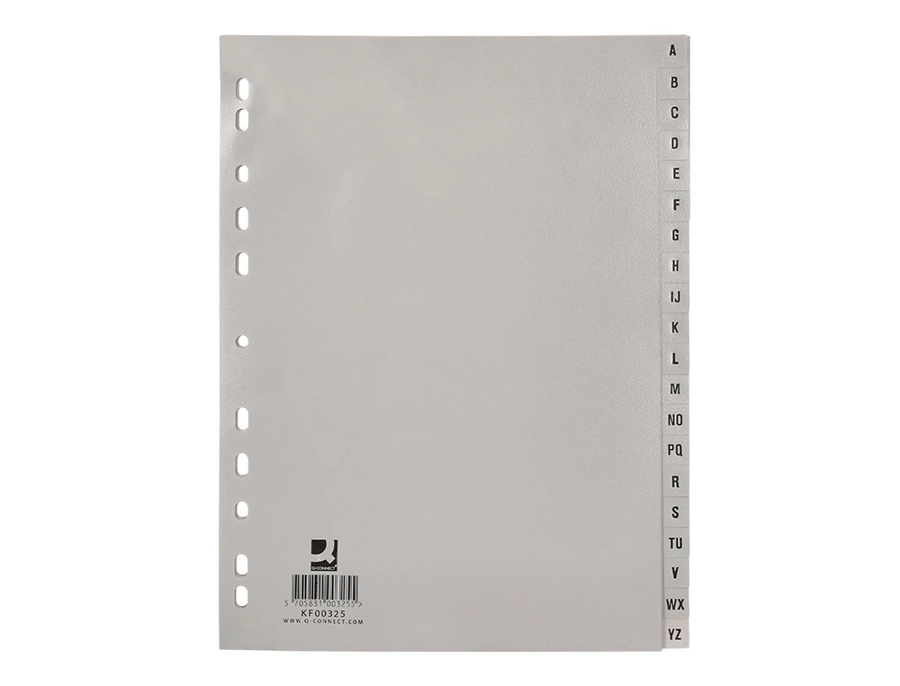 Optimisez votre organisation avec cet intercalaire Q-Connect en polypropylène de haute qualité, conçu pour offrir une solution de classement durable et efficace. Doté de multiples perforations et d’un système alphabétique gravé, cet accessoire est idéal pour ceux qui souhaitent garder leurs documents en ordre tout en garantissant une durabilité inégalée.